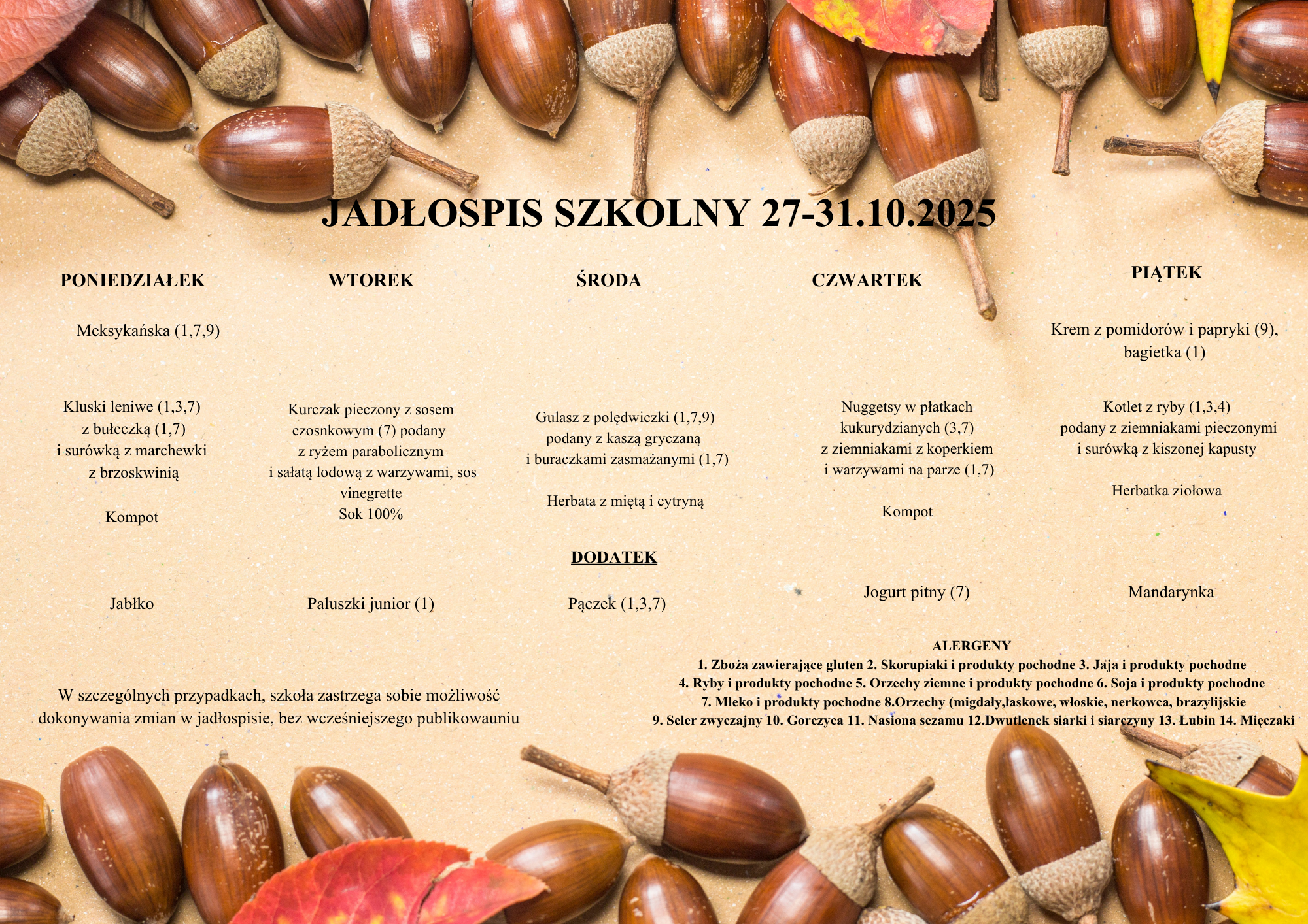 Jadłospis 27.10- 31.10.2025