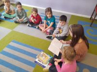 Czytanie książki przez siostrę Zuzi