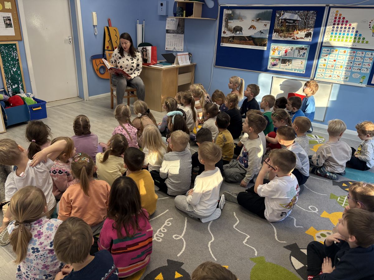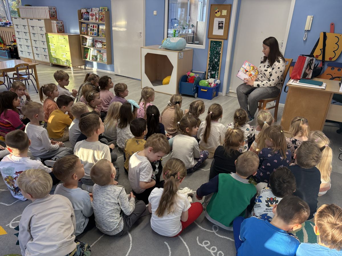Spotkanie czytelnicze z mamą Martynki - absolwentką PP5 w ramach zadania 40 bajek na 40 - lecie przedszkola